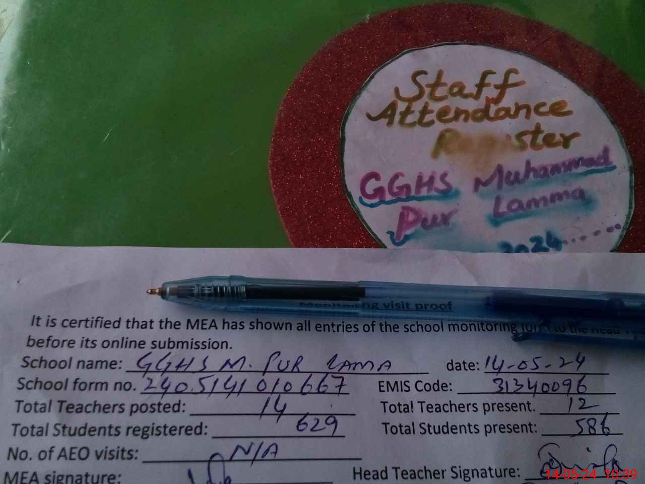 | Attendance Register | Head Teacher | MEA with School | Visit Proof |