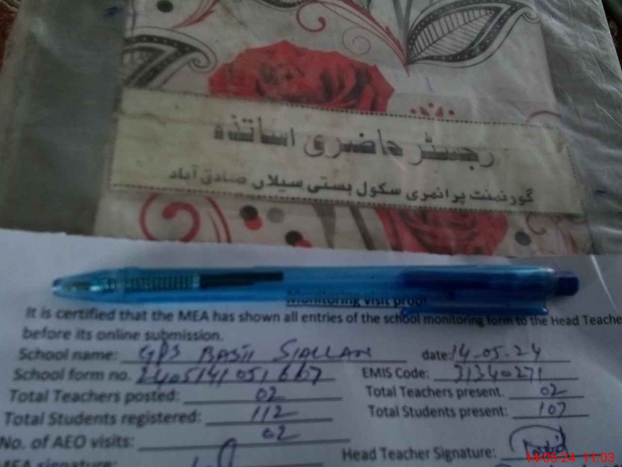 | Attendance Register | Head Teacher | MEA with School | Visit Proof |