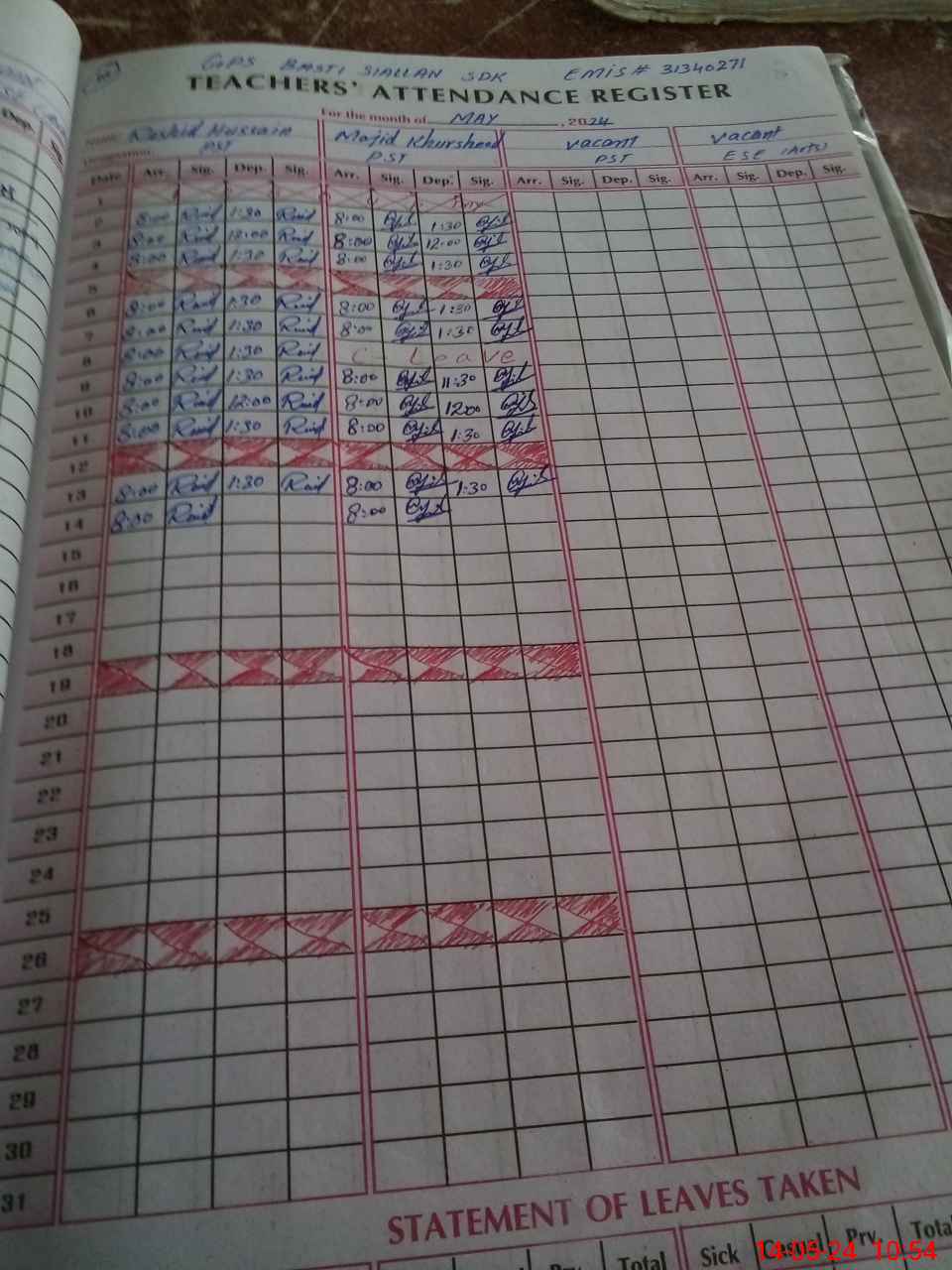 | Leave | Duty | Absent | Maternity | Medical | Ex- Pak |