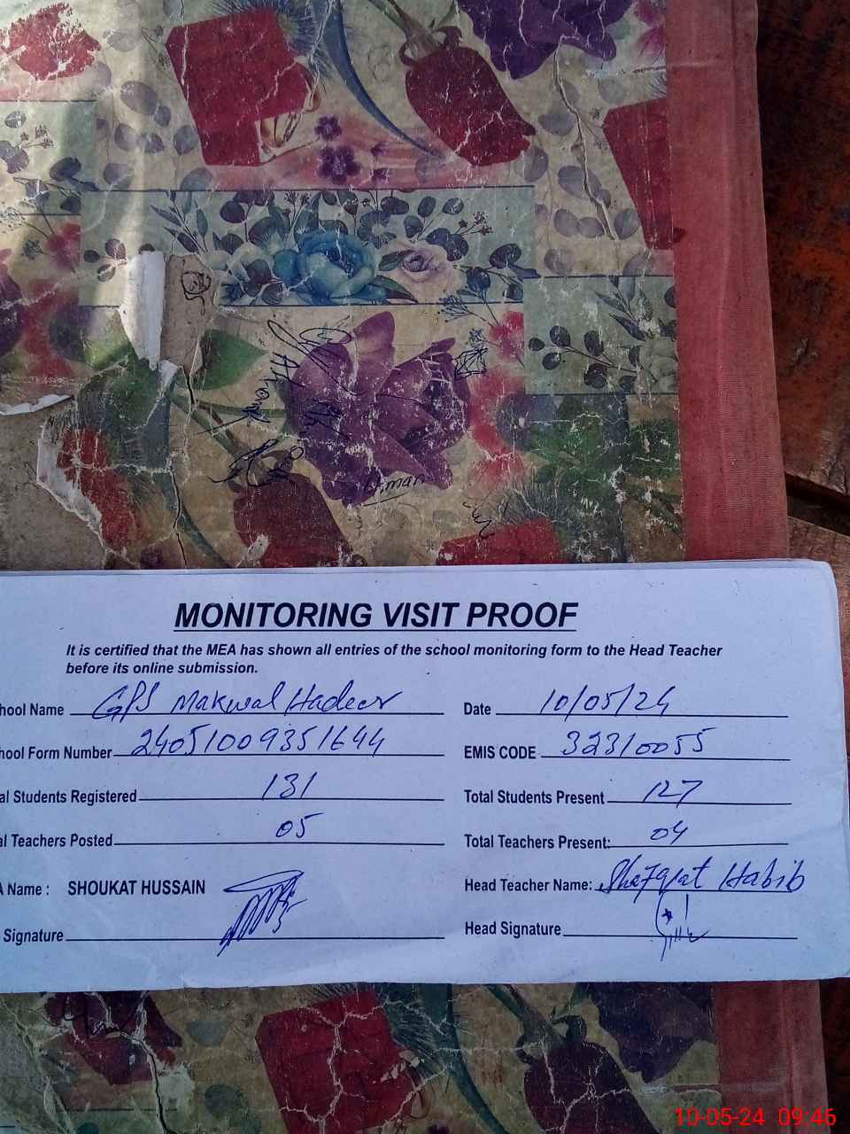 | EMIS Code: 32310055 | Name of School: GPS MAKWAL HADEER | |||