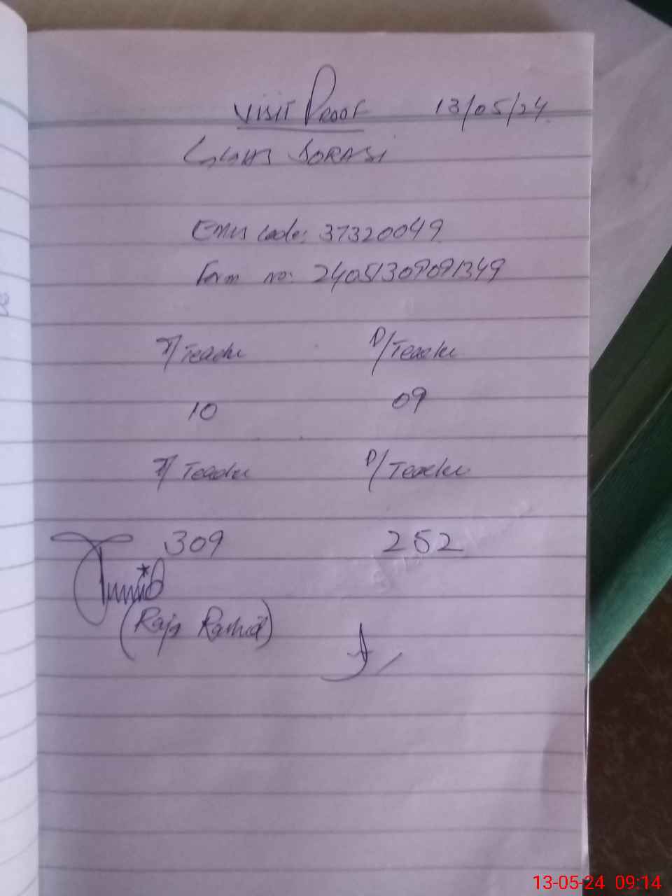 | Attendance Register | Head Teacher | MEA with School | Visit Proof |