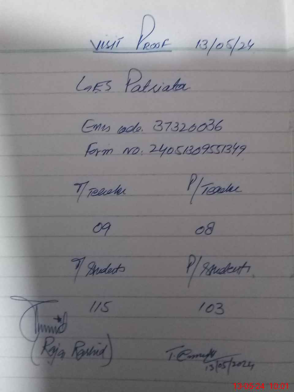 | Attendance Register | Head Teacher | MEA with School | Visit Proof |
