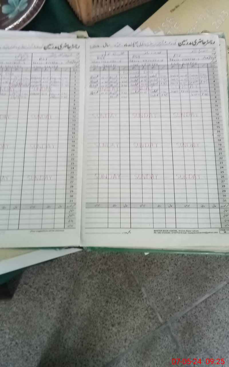 | CNIC | Full Name | Designation | R/C | Absence During Last Calender Month |
