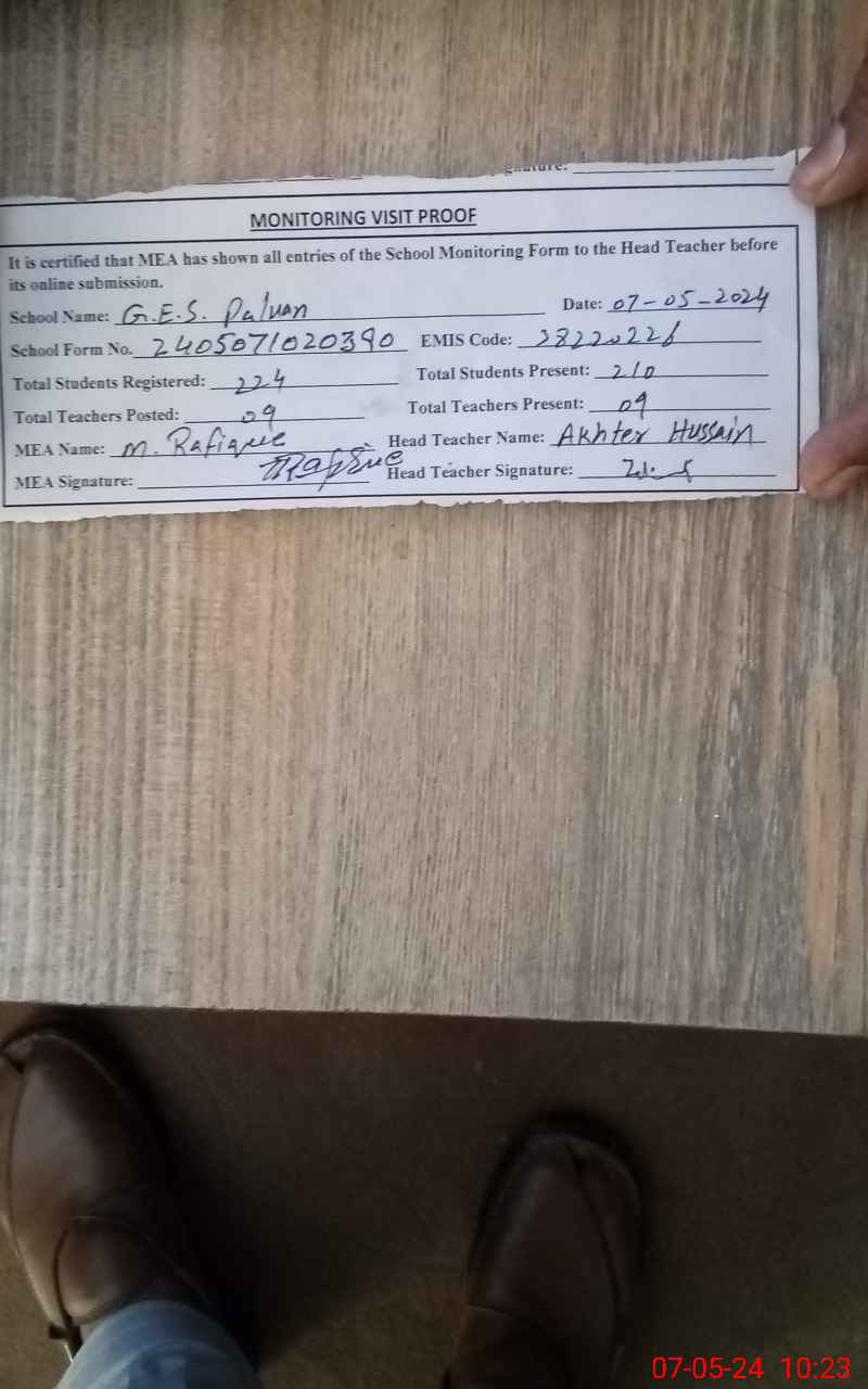 | Certified that this School was Inspected by the Undersigned MEA/DMO Today and the Information Stated Above is as Per Record. | |||||
