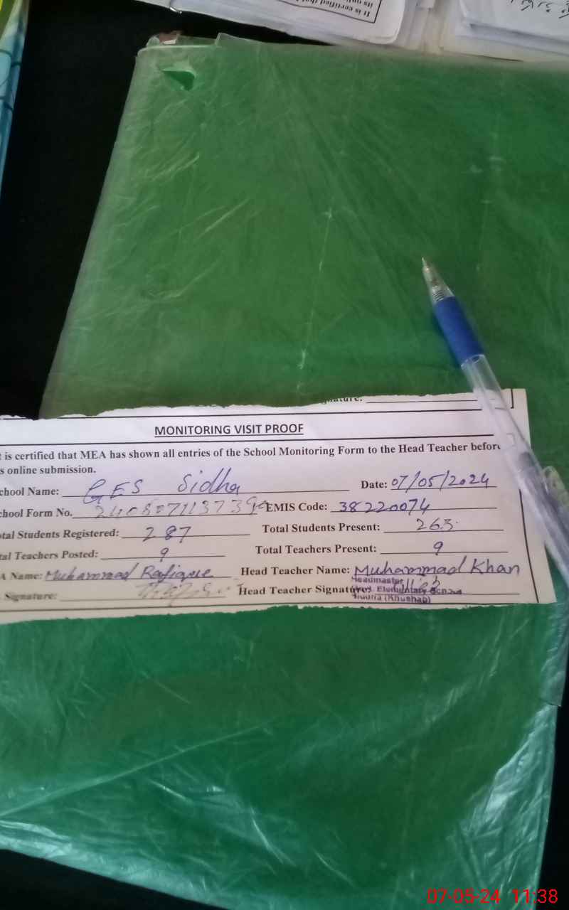| EMIS Code: 38220074 | Name of School: GES SIDHA WALA | |||