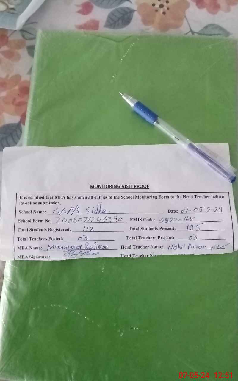 | EMIS Code: 38220165 | Name of School: GGPS SIDHA | |||