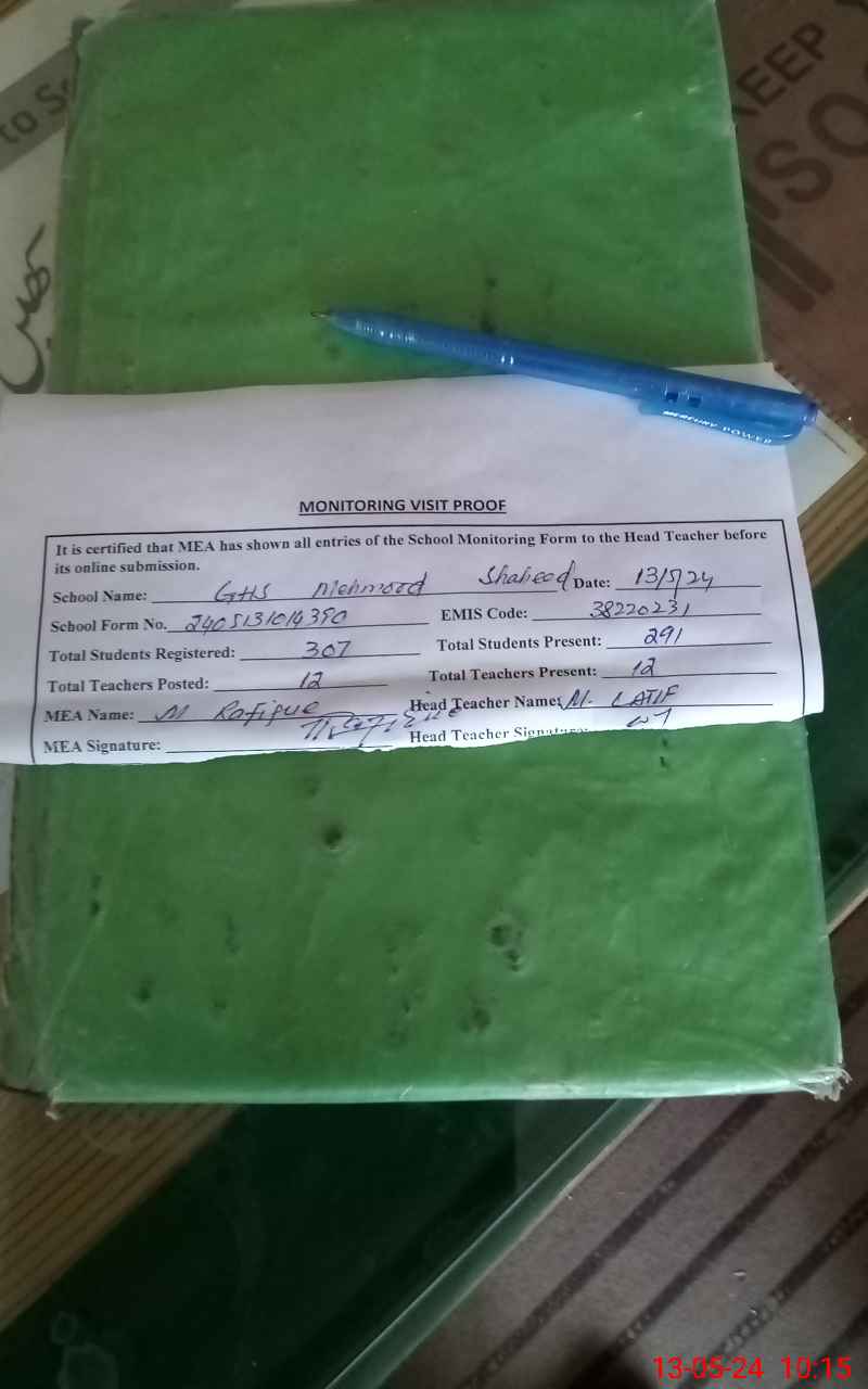 | EMIS Code: 38220231 | Name of School: GHS MAHMOOD SHAHEED | |||