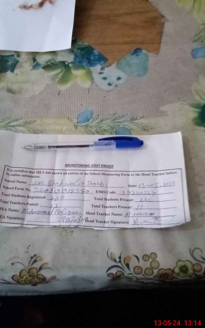 | EMIS Code: 38220227 | Name of School: GHS SHAH WALA JANUBI | |||