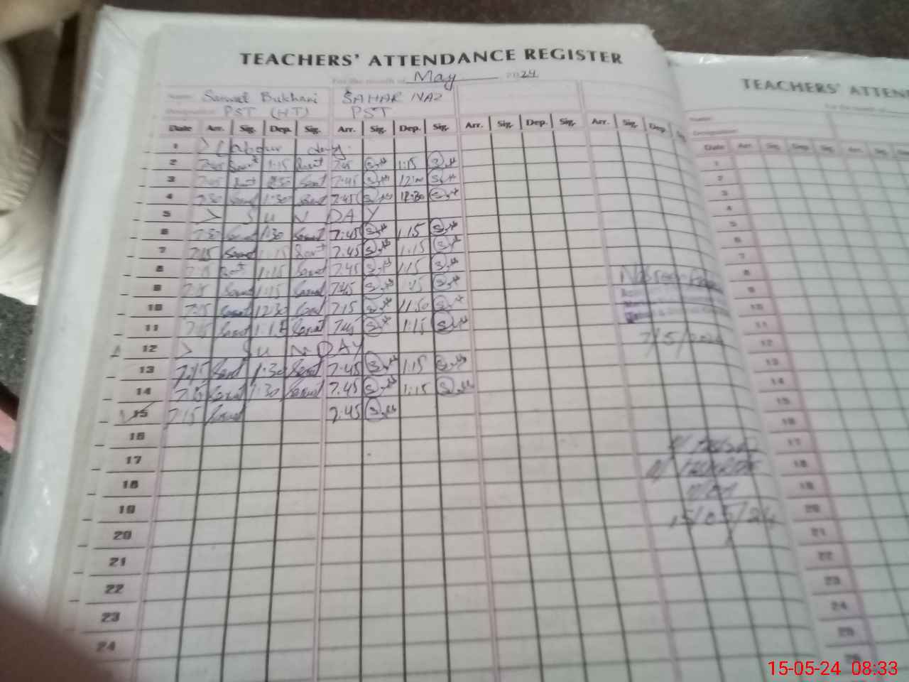 | Name: SA**** BU**** Designation: (School Headmaster's/Headmistress's) PST Phone/Cell Number: 03**** |