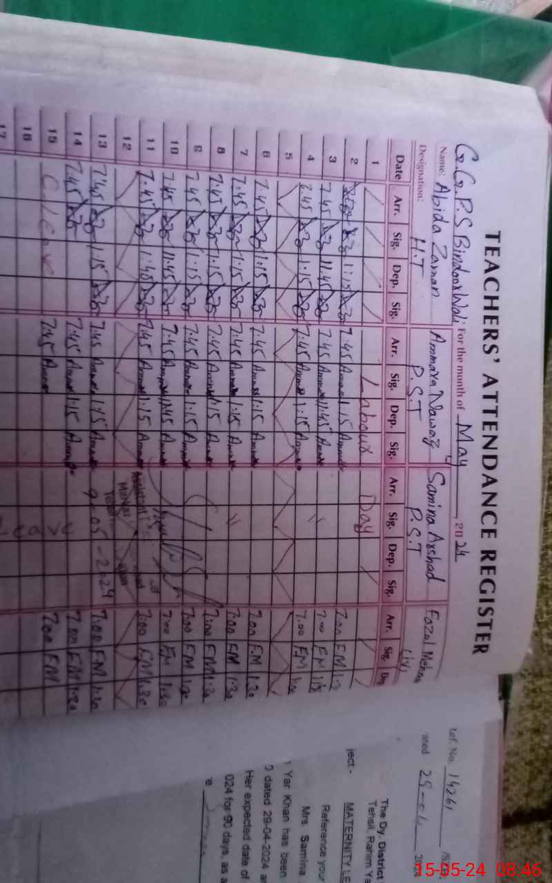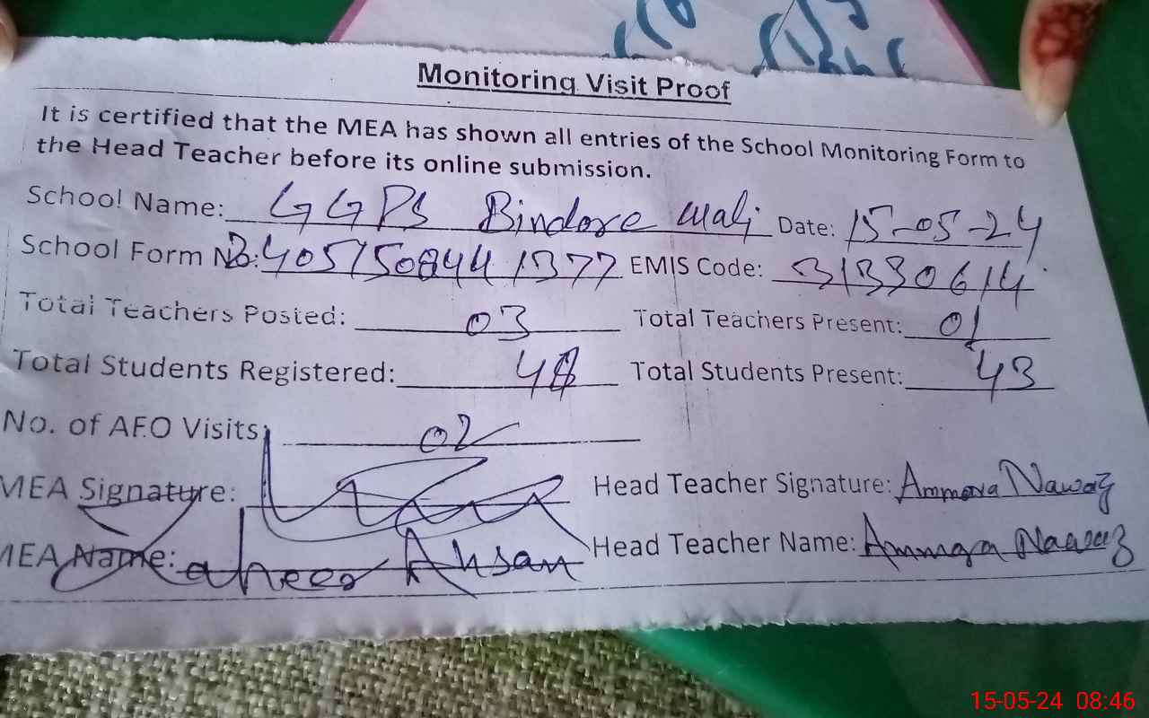 | Monitoring Date: 15-05-2024 | Start Time: 15-05-2024 08:15 AM | End Time: 15-05-2024 08:52 AM | Name of MEA: Za**** Ah**** | |