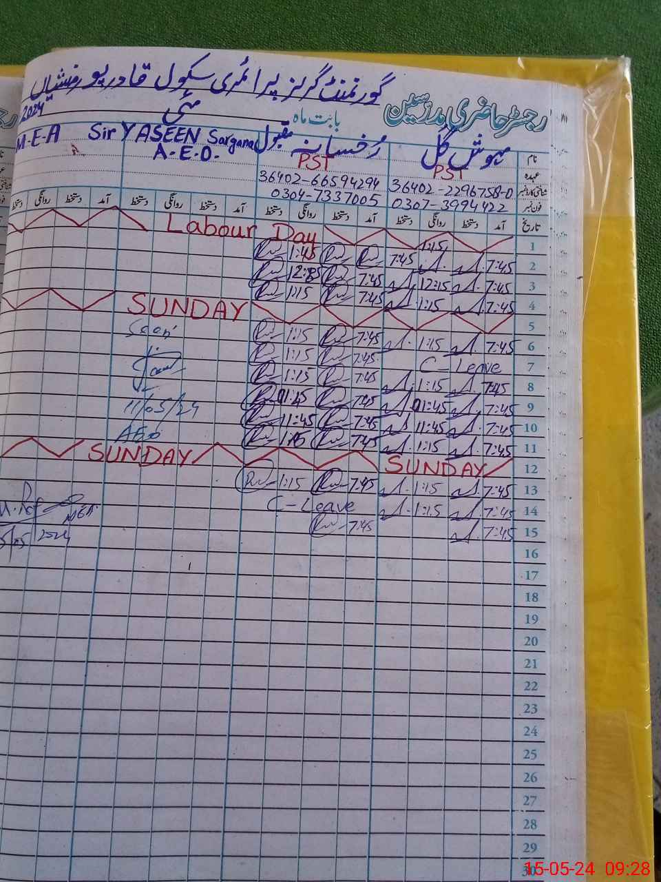 | CNIC | Full Name | Designation | R/C | Absence During Last Calender Month |