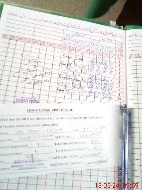 | EMIS Code: 38210427 | Name of School: GPS CHAK NO. 42 MB | |||