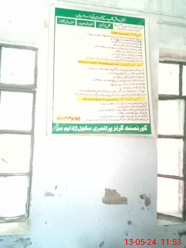 | District: KHUSHAB | Tehsil: KHUSHAB | Markaz: CHAK NO 40/MB (FEMALE) | Level: Primary | |