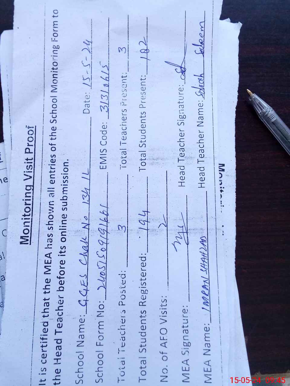 | EMIS Code: 31310615 | Name of School: GGES CHAK NO 134/1-L | |||