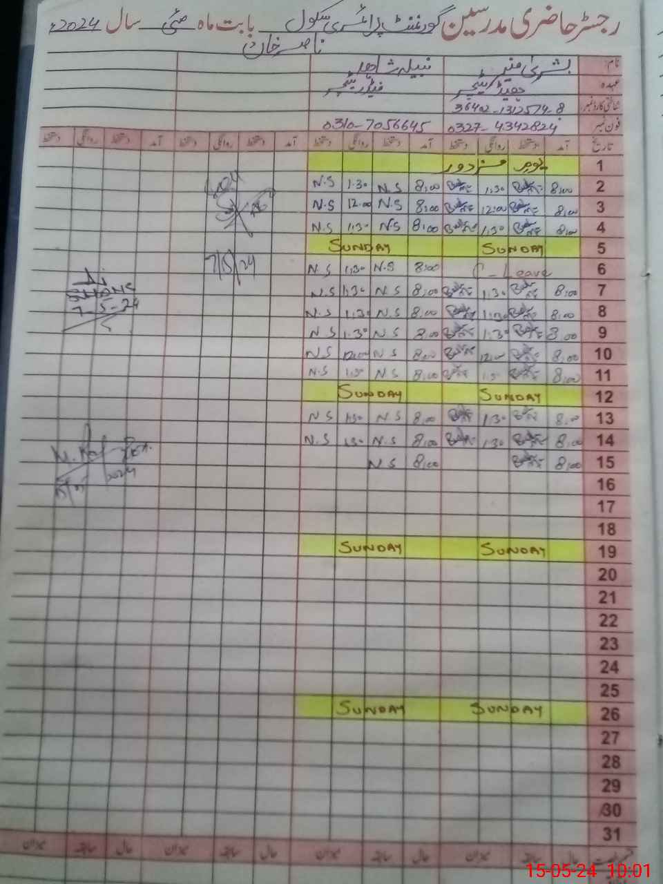 | Name: BU**** MU**** Designation: (School Headmaster's/Headmistress's) PST Phone/Cell Number: 03**** |