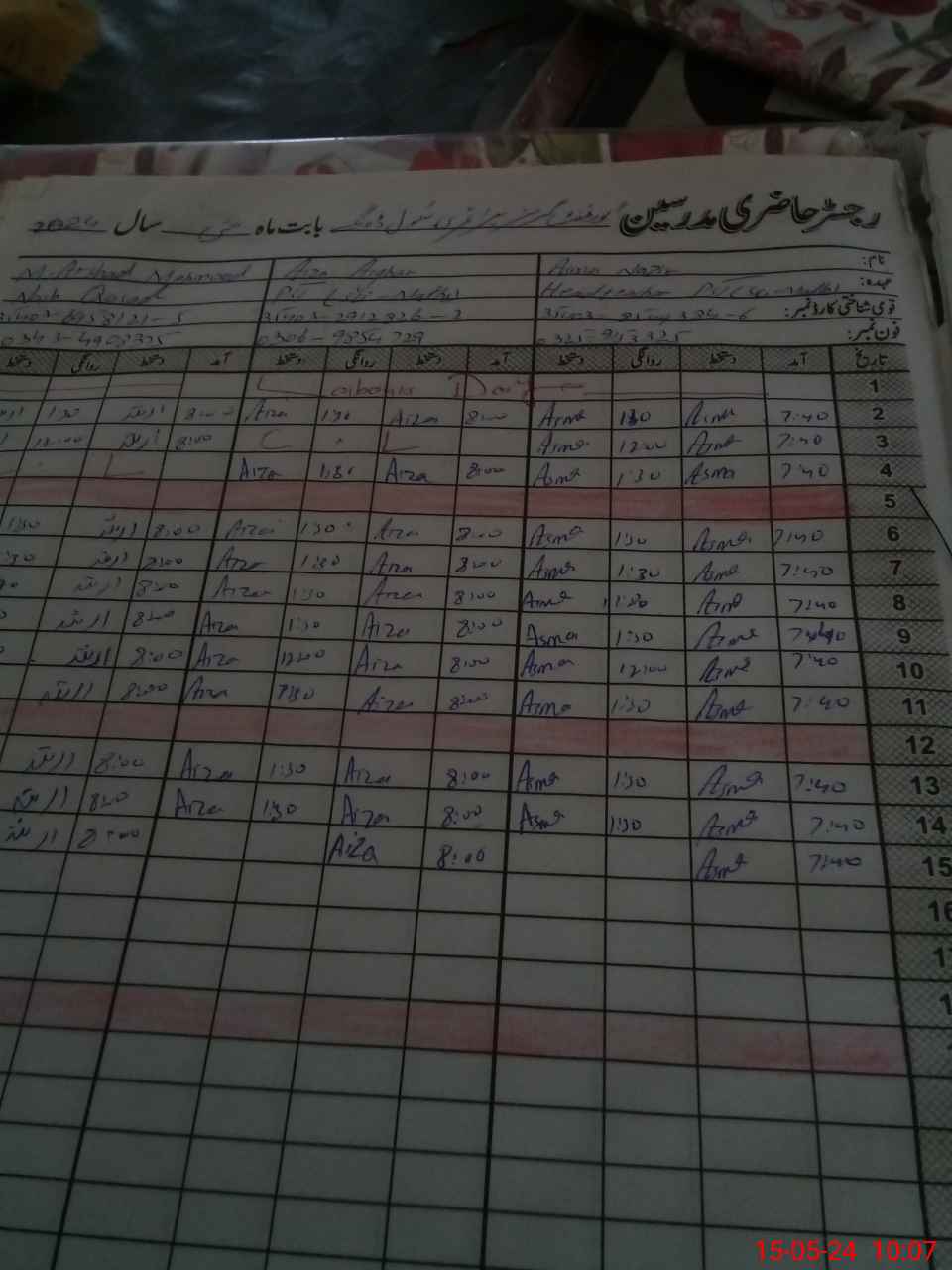 | CNIC | Full Name | Designation | R/C | Absence During Last Calender Month |