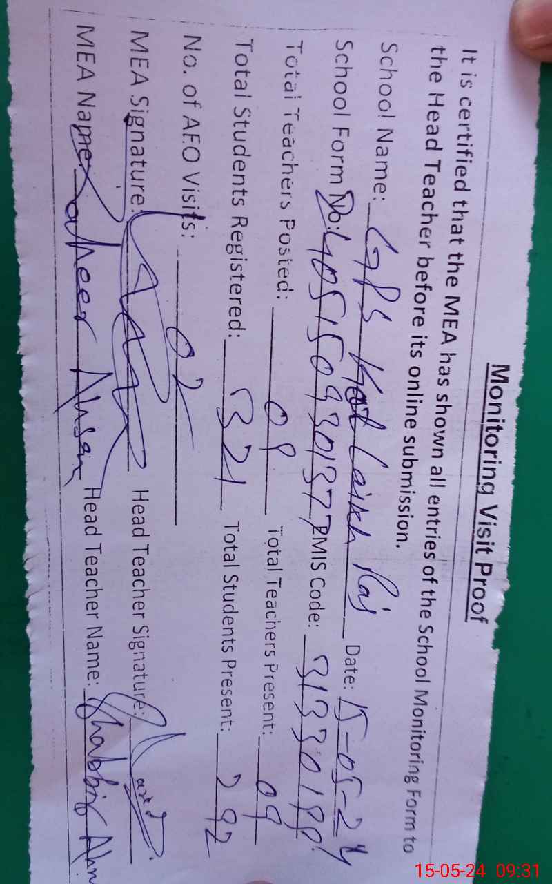 | EMIS Code: 31330199 | Name of School: GPS KOT LAIKH RAJ | |||