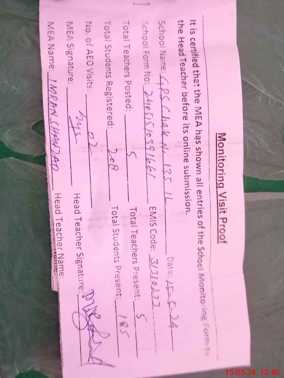 | EMIS Code: 31310273 | Name of School: GPS CHAK NO. 135/1-L (After Noon) | |||