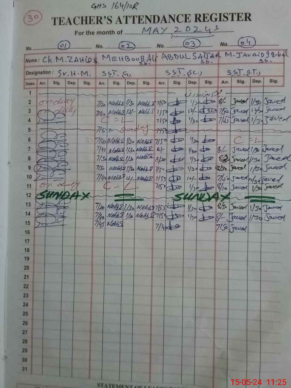 | CNIC | Full Name | Designation | R/C | Absence During Last Calender Month |