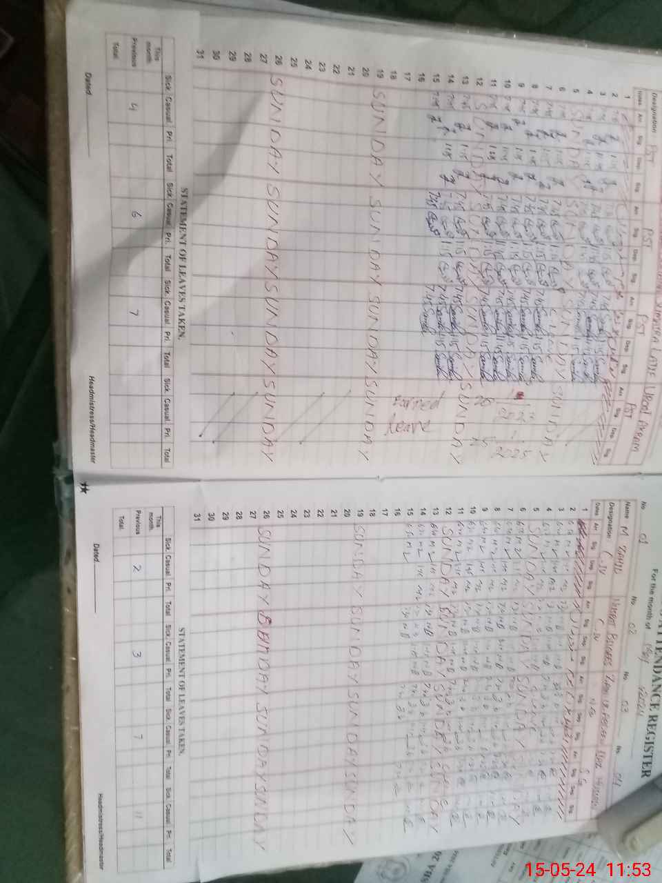 | CNIC | Full Name | Designation | R/C | Absence During Last Calender Month |