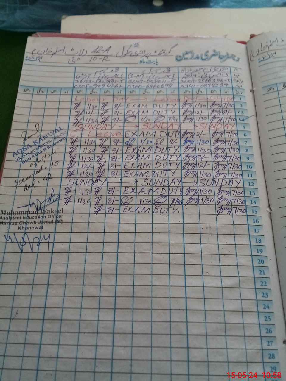 | CNIC | Full Name | Designation | R/C | Absence During Last Calender Month |