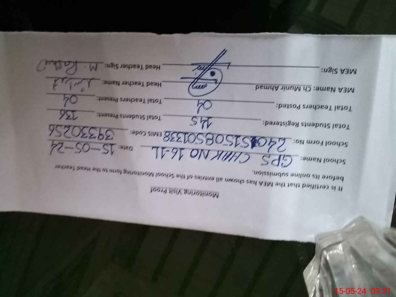 | EMIS Code: 39330256 | Name of School: GPS CHAK NO 16/1L | |||
