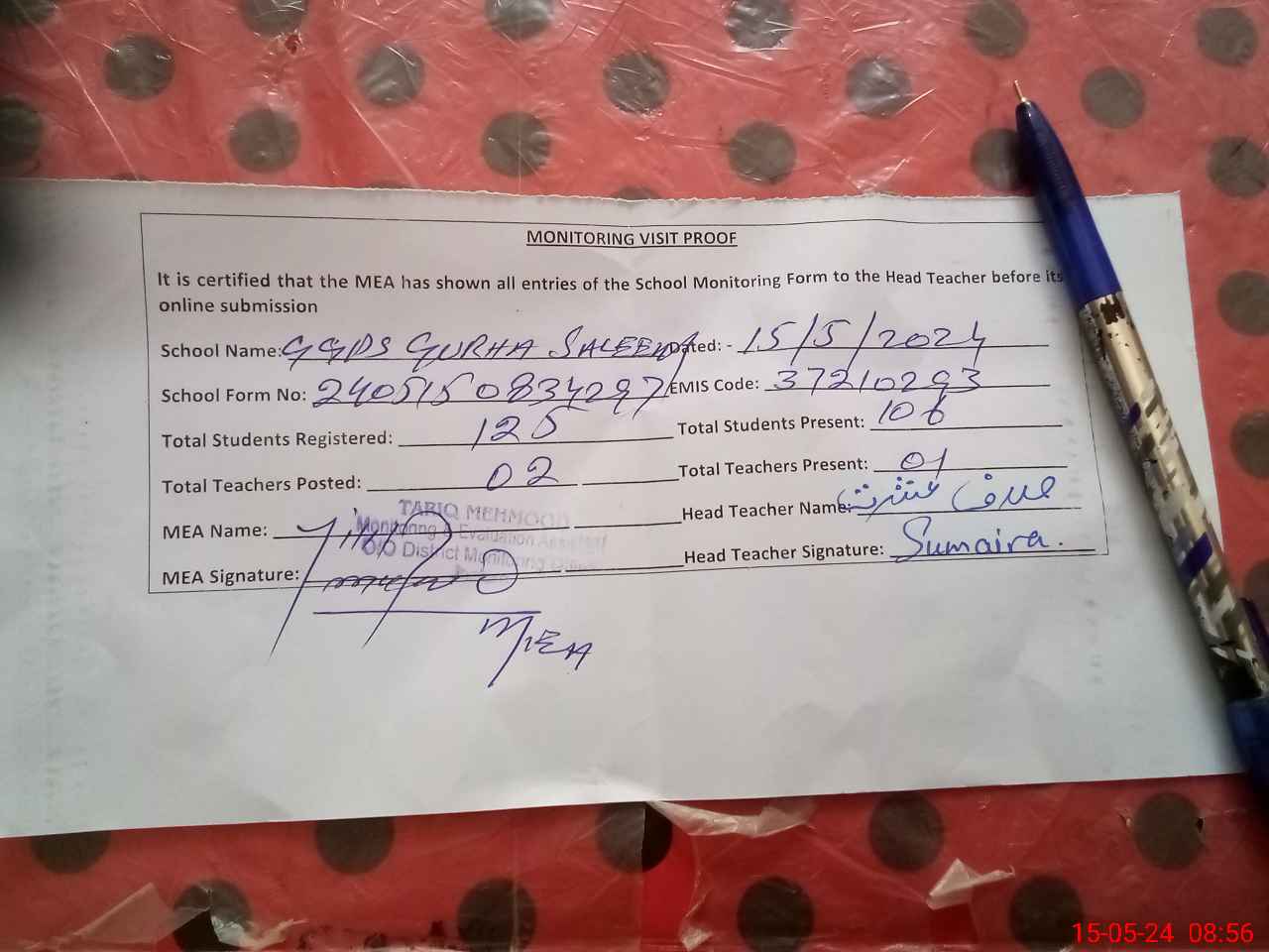 | EMIS Code: 37210293 | Name of School: GGPS GURRA SALIM | |||