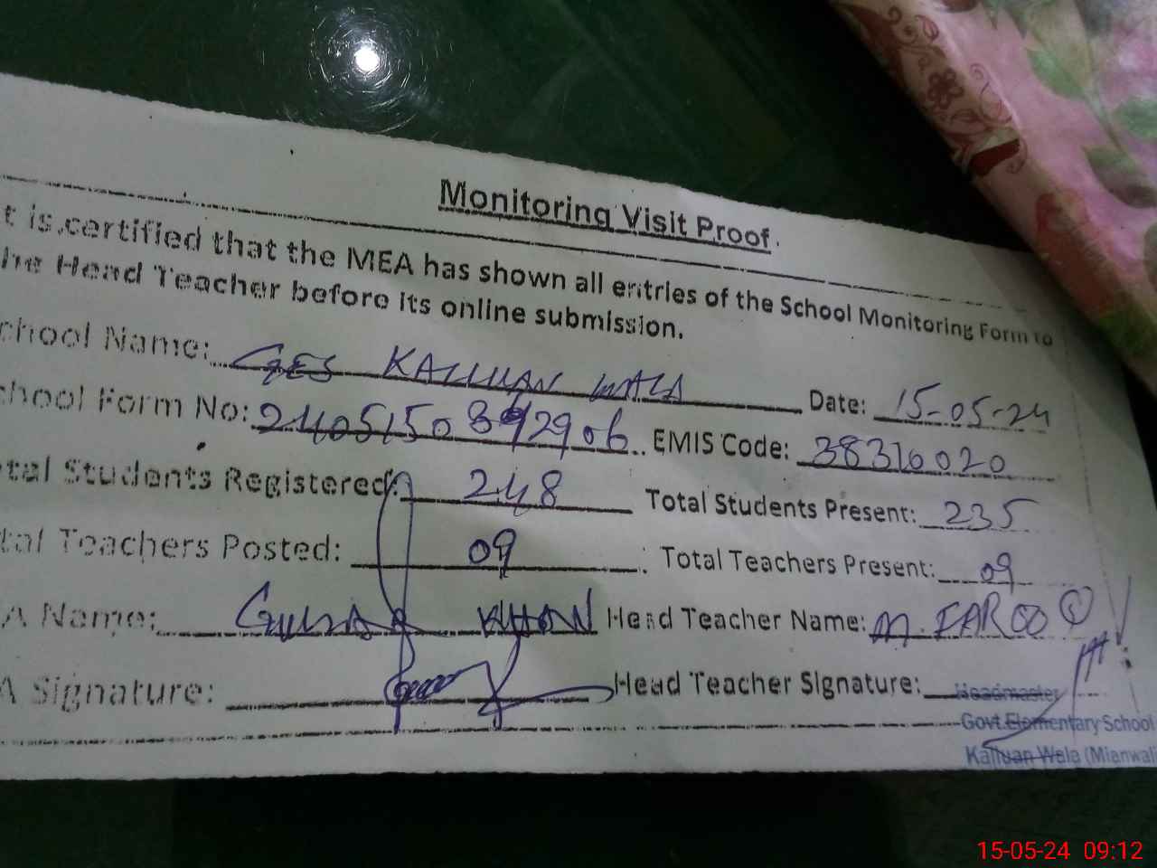 | EMIS Code: 38310020 | Name of School: GES KALLUAN WALA ISA KHEL | |||