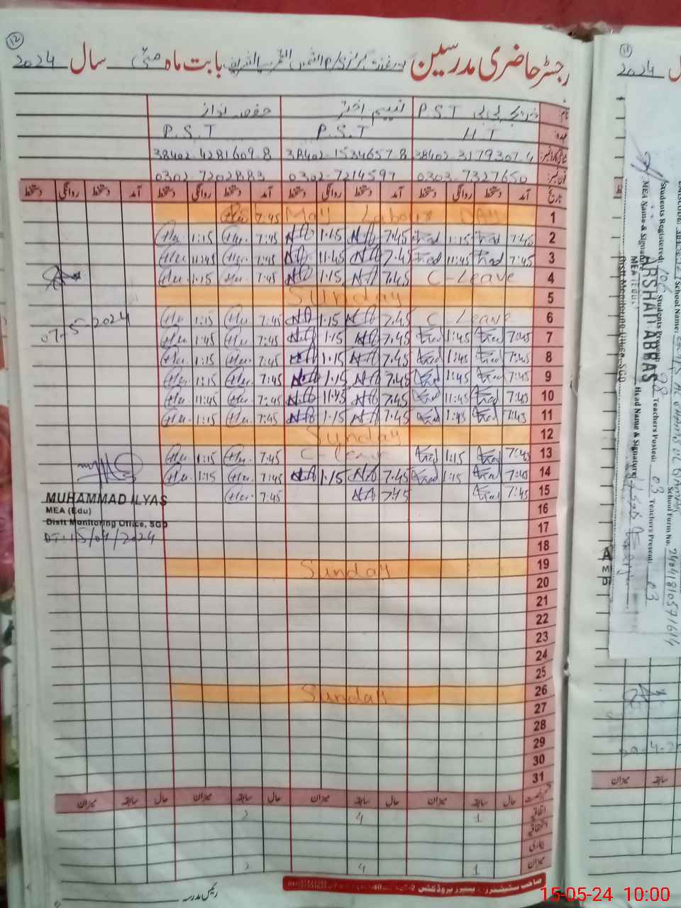 | Name: KH**** BI**** Designation: (School Headmaster's/Headmistress's) PST Phone/Cell Number: 03**** |