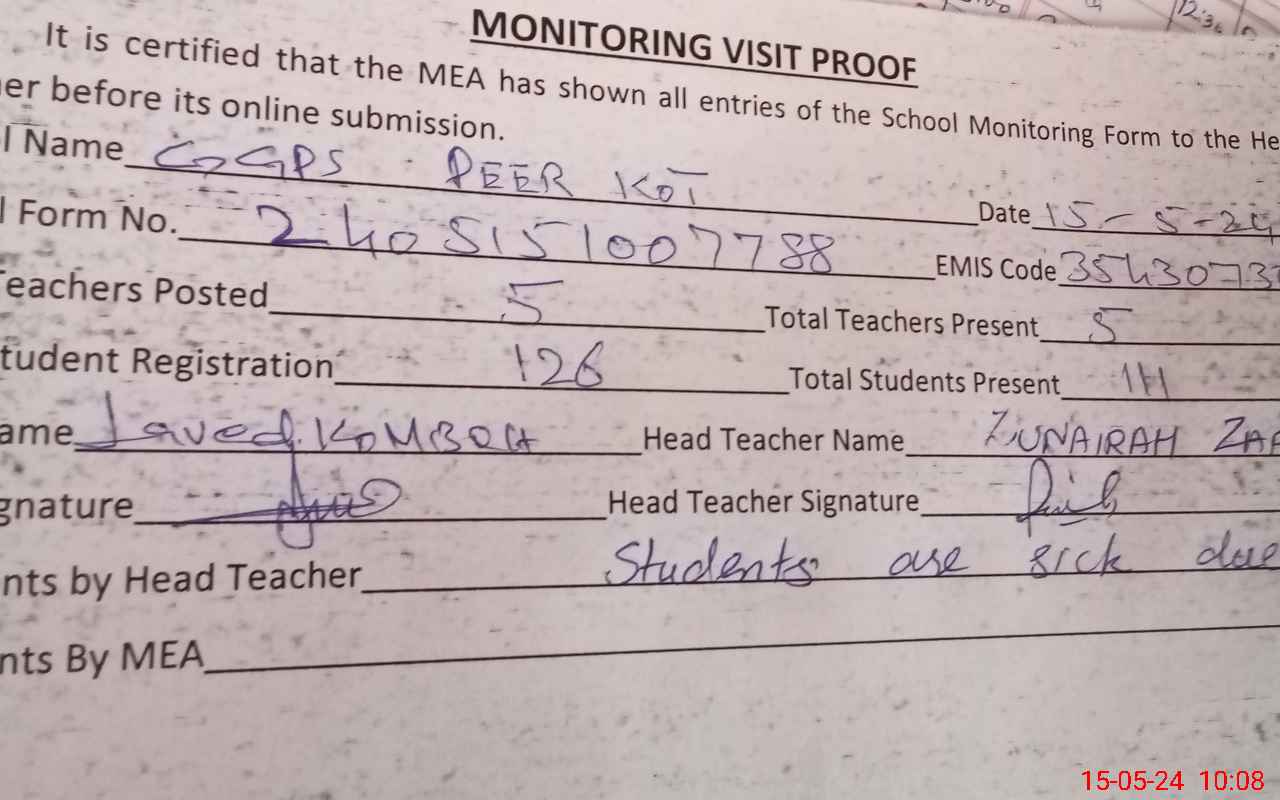 | EMIS Code: 35430730 | Name of School: GGPS PEER KOT | |||