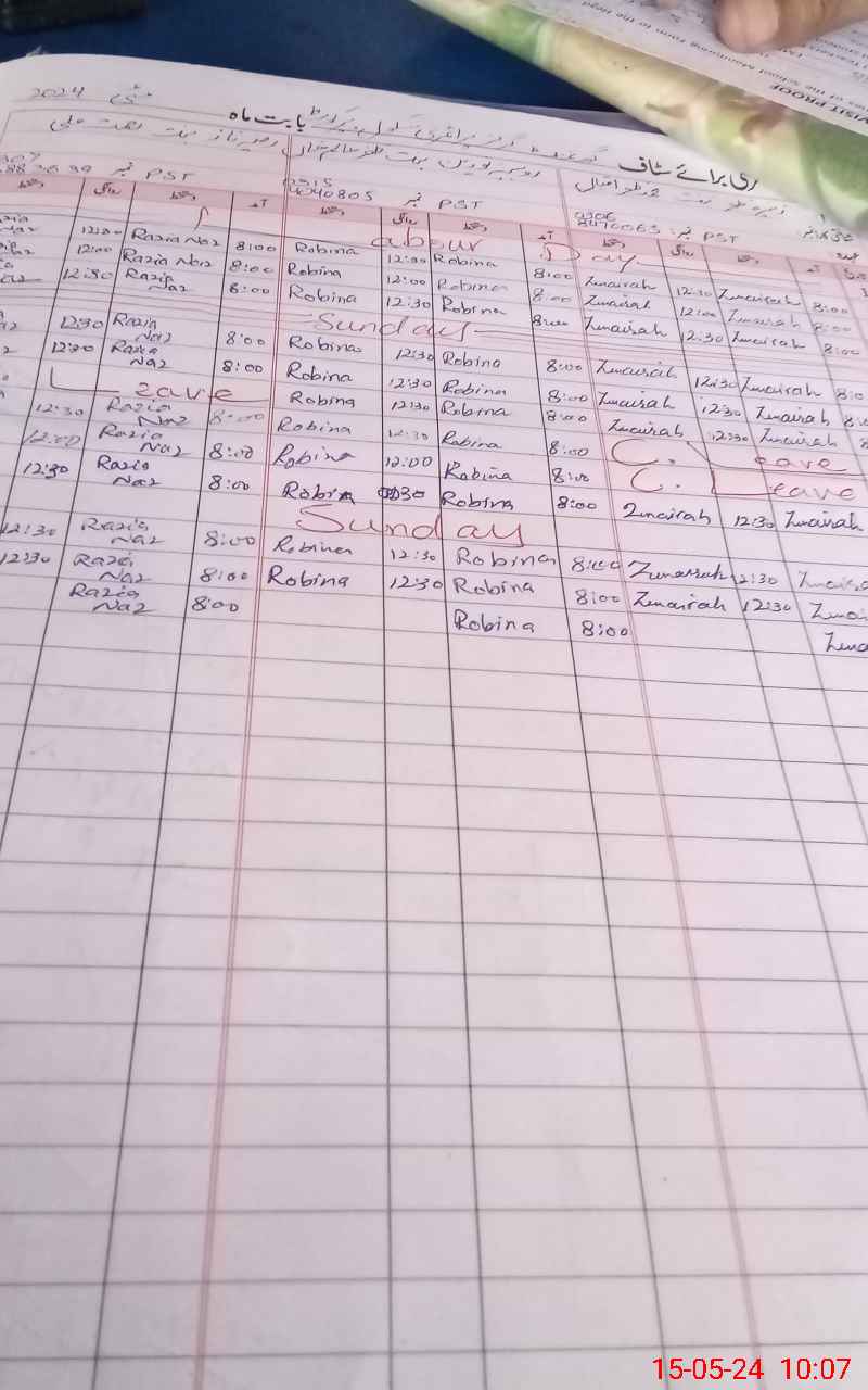 | Leave | Duty | Absent | Maternity | Medical | Ex- Pak |