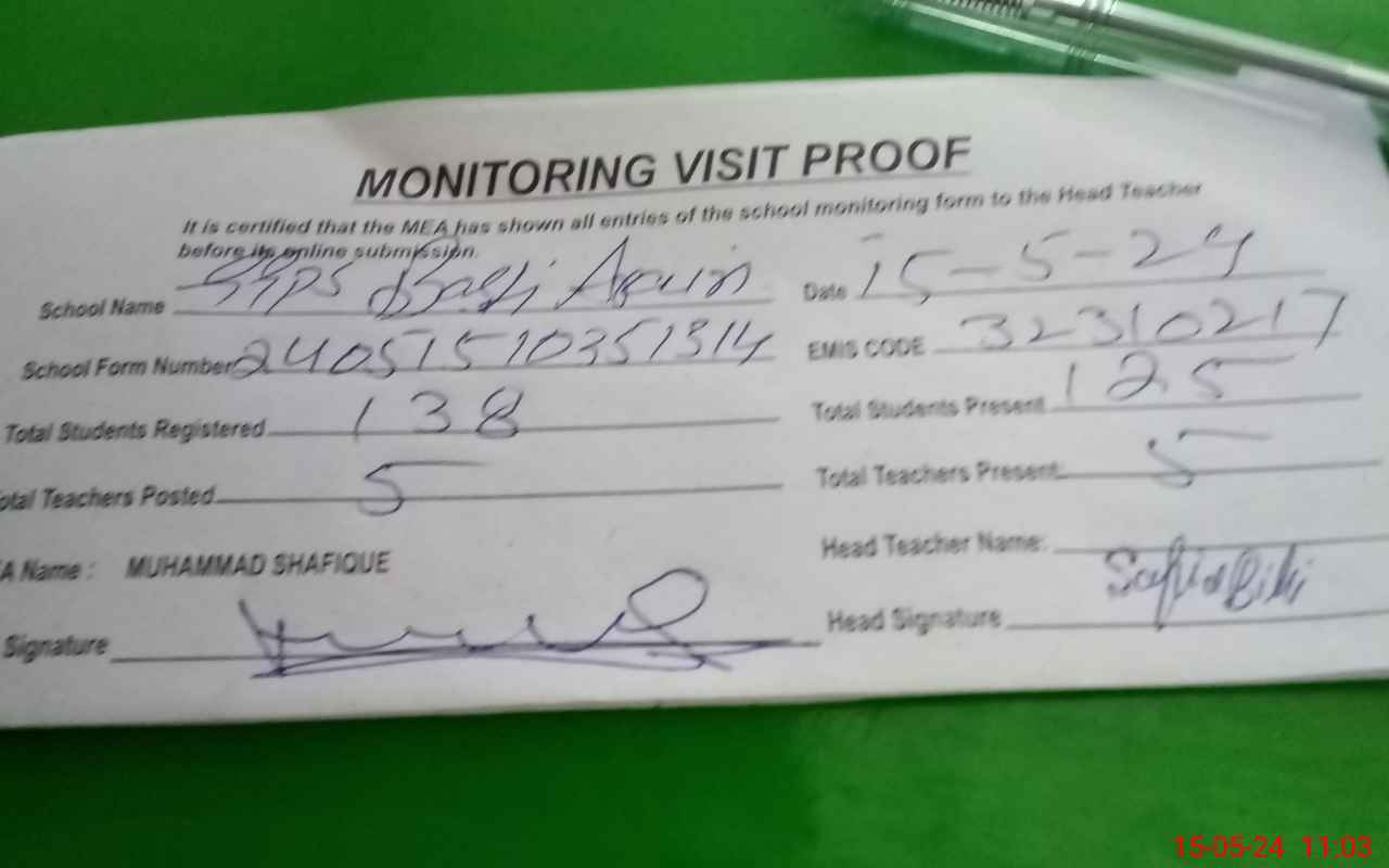 | Attendance Register | Head Teacher | MEA with School | Visit Proof |