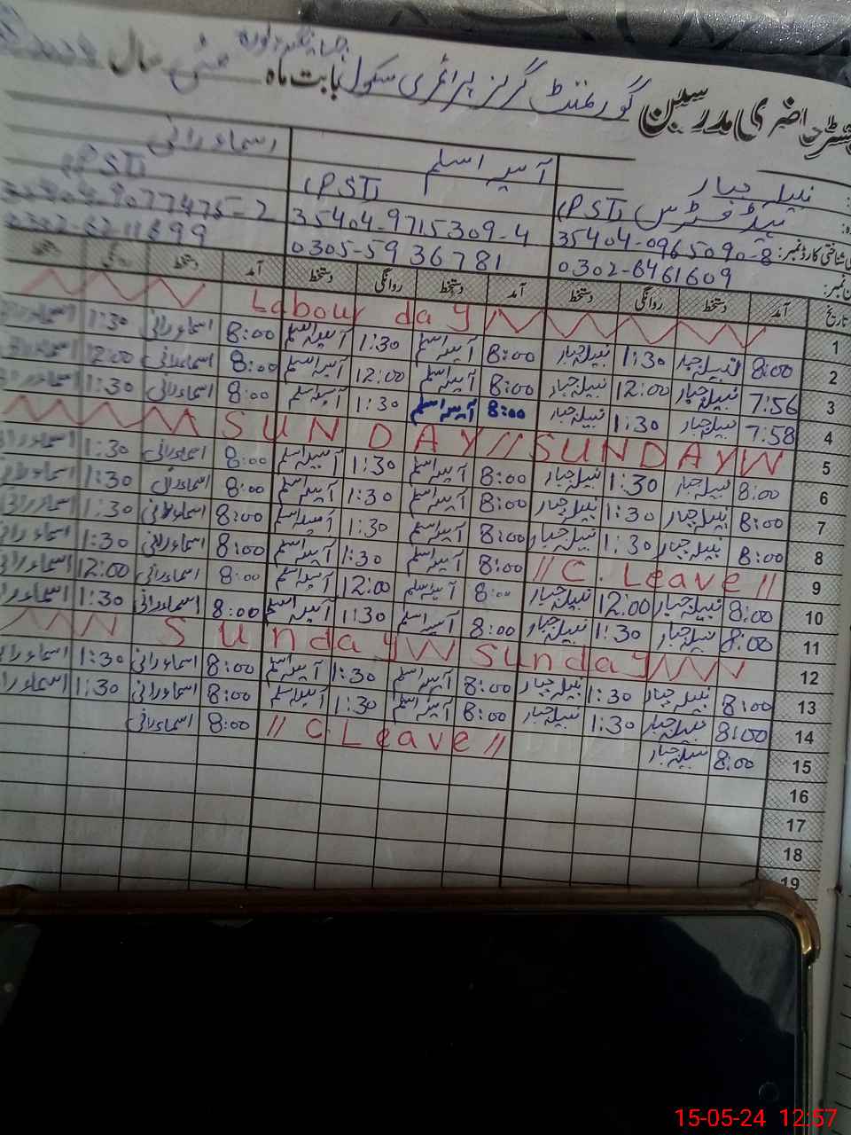 | CNIC | Full Name | Designation | R/C | Absence During Last Calender Month |