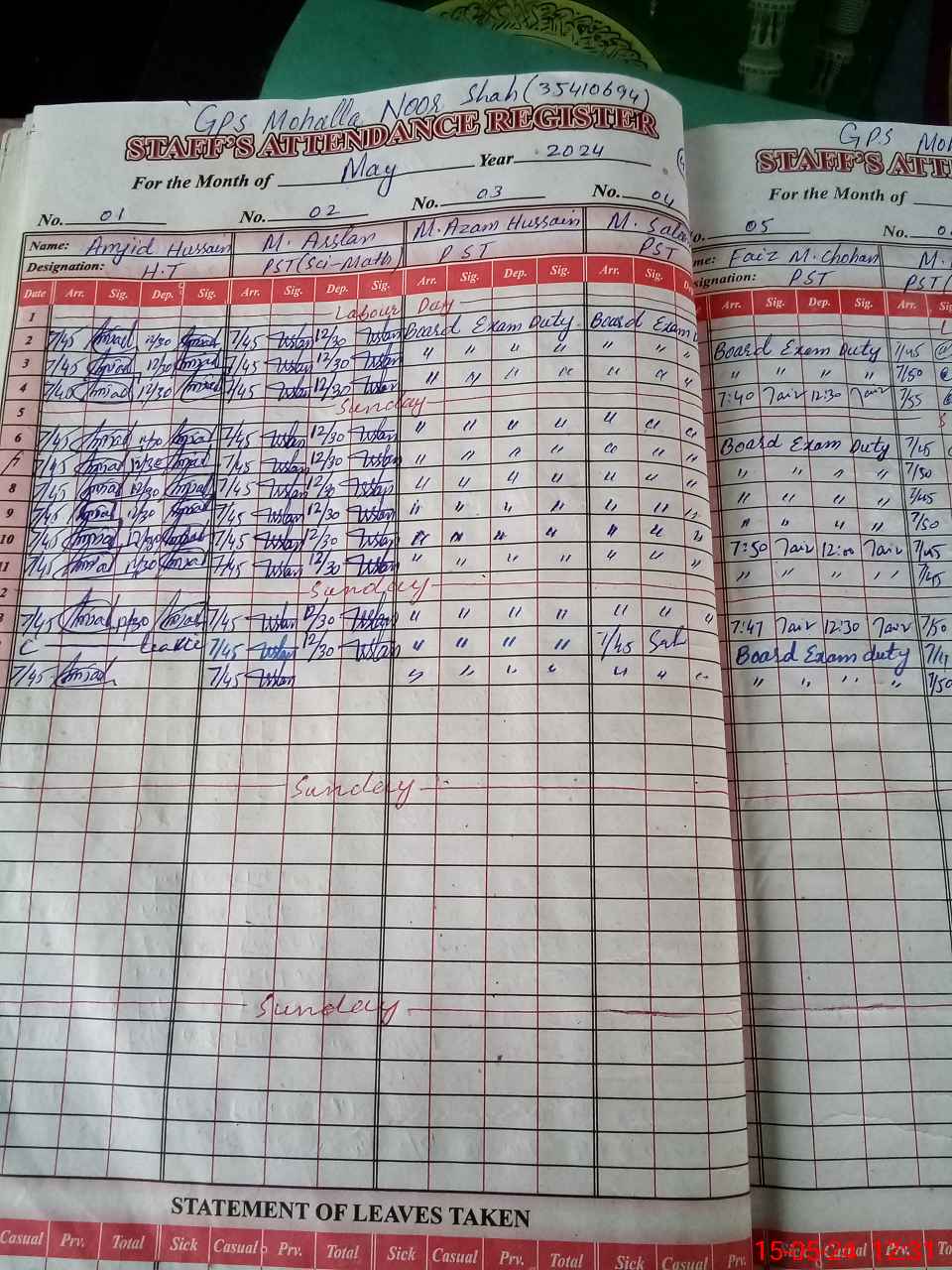 | 35**** | Mu**** Az**** Hu**** Sh**** | PST | Regular | 0 | 0 | 0 | 0 | 0 | 0 | 0 | 0 | 0 | Exam Duty |