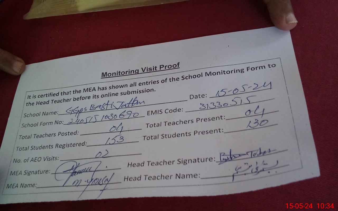 | Attendance Register | Head Teacher | MEA with School | Visit Proof |