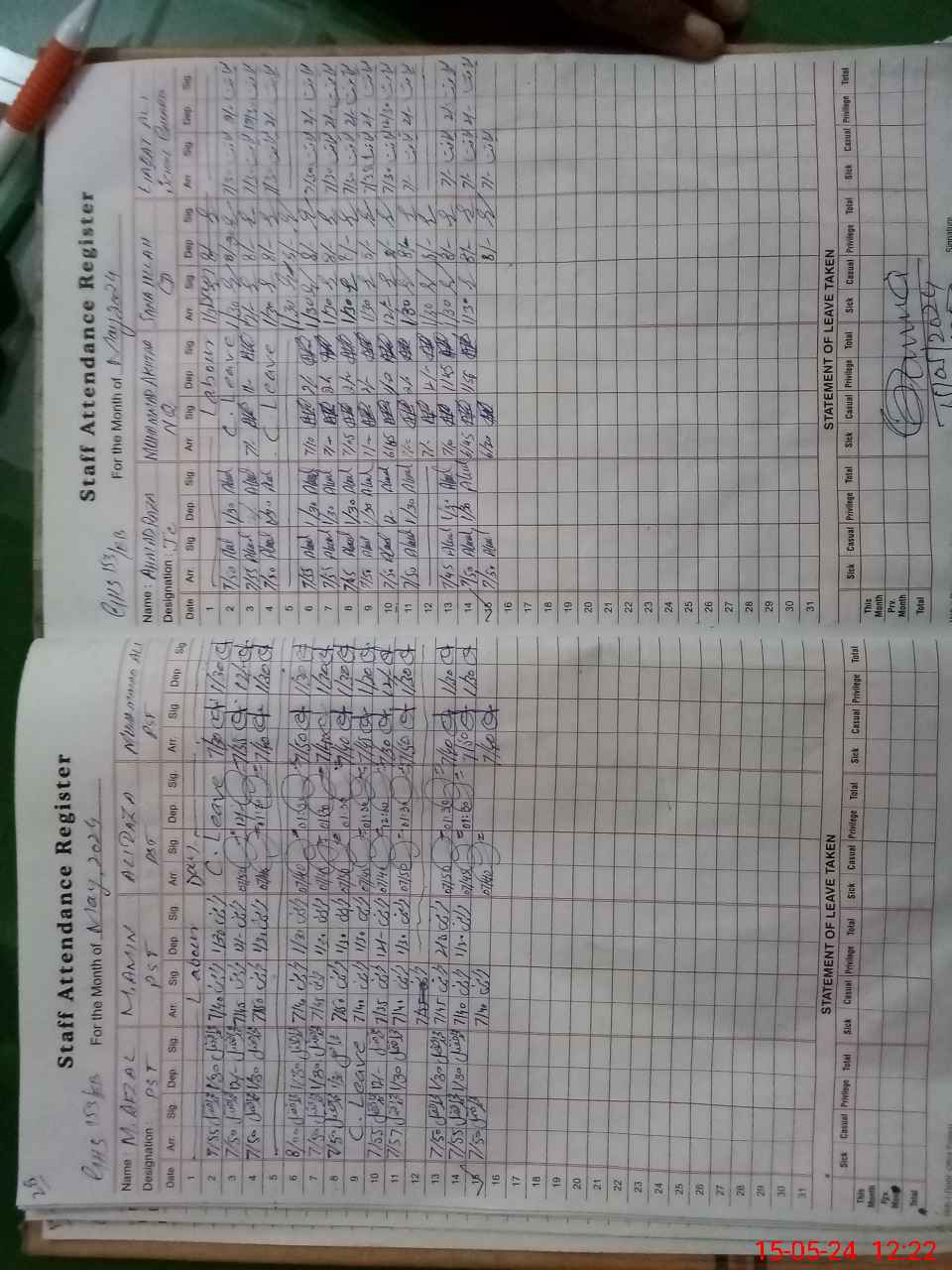 | CNIC | Full Name | Designation | R/C | Absence During Last Calender Month |