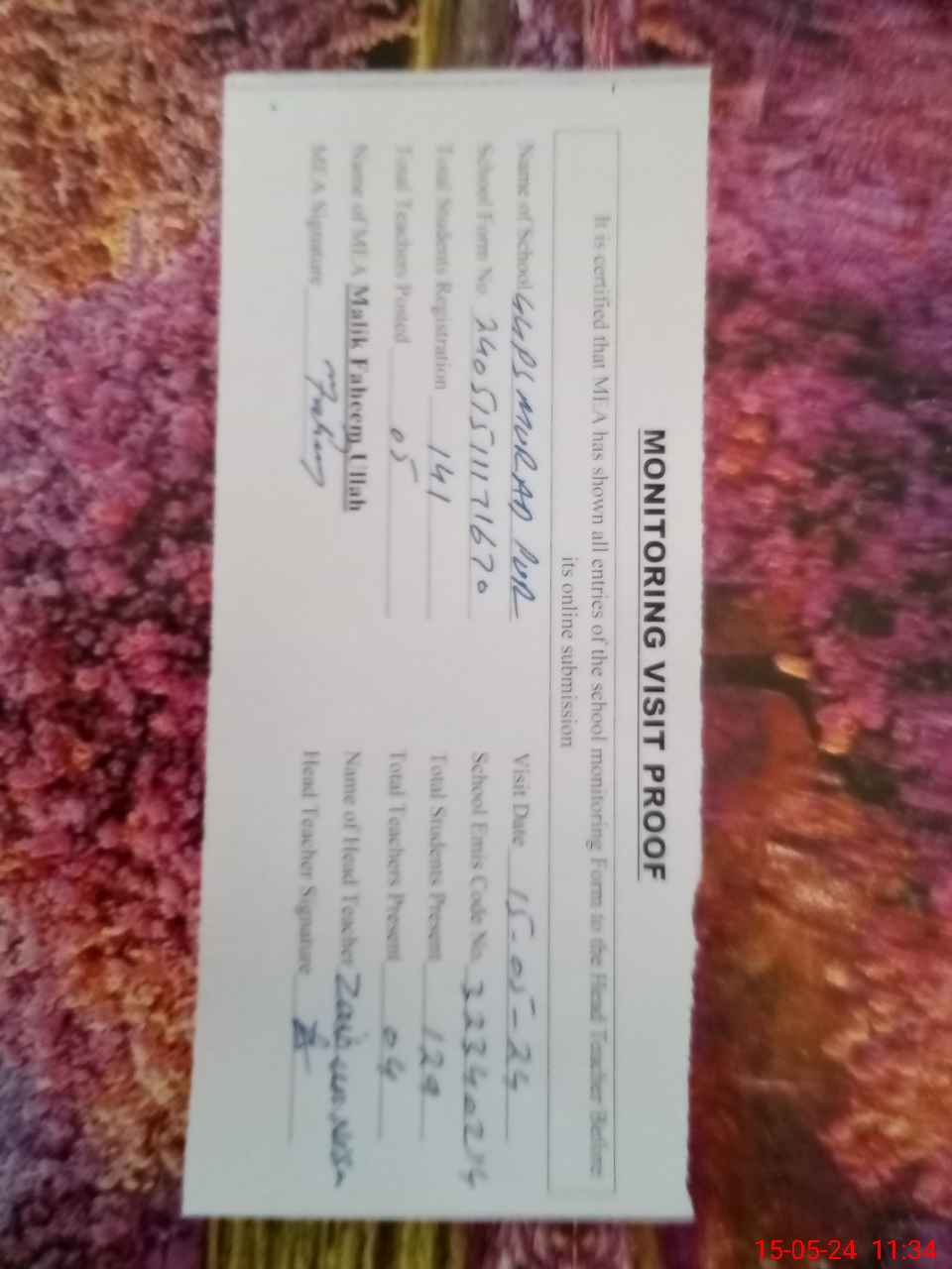 | Certified that this School was Inspected by the Undersigned MEA/DMO Today and the Information Stated Above is as Per Record. | |||||