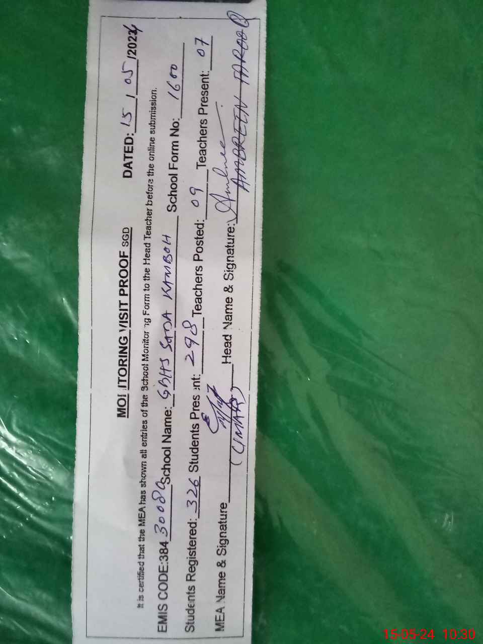 | EMIS Code: 38430080 | Name of School: GGHS SADA KAMBOH | |||