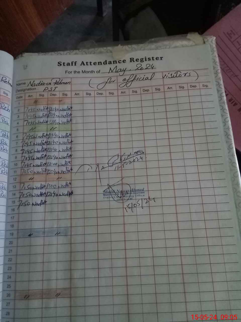| Monitoring Date: 15-05-2024 | Start Time: 15-05-2024 08:30 AM | End Time: 15-05-2024 09:06 AM | Name of MEA: Na**** Ah**** | |
