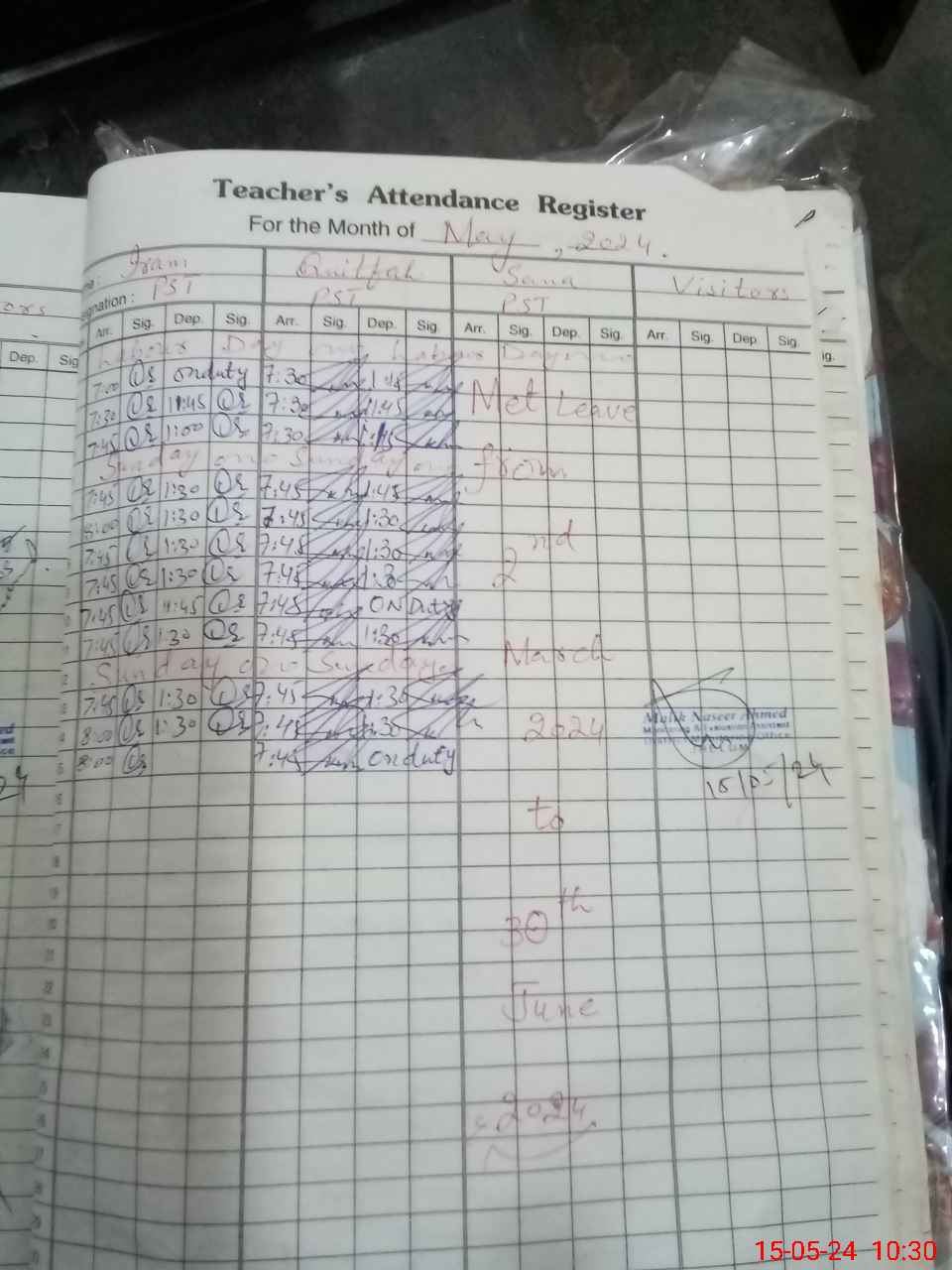 | 37**** | Sa**** Ch**** | PST | Regular | 30 | 0 | 0 | 30 | 0 | 0 | 0 | 0 | 0 | Maternity |