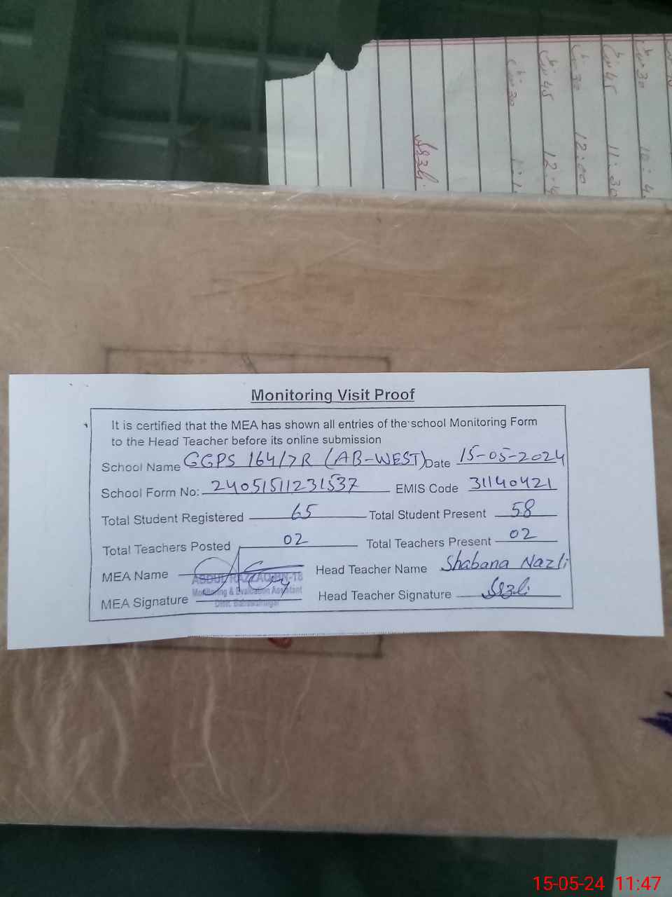 | Certified that this School was Inspected by the Undersigned MEA/DMO Today and the Information Stated Above is as Per Record. | |||||