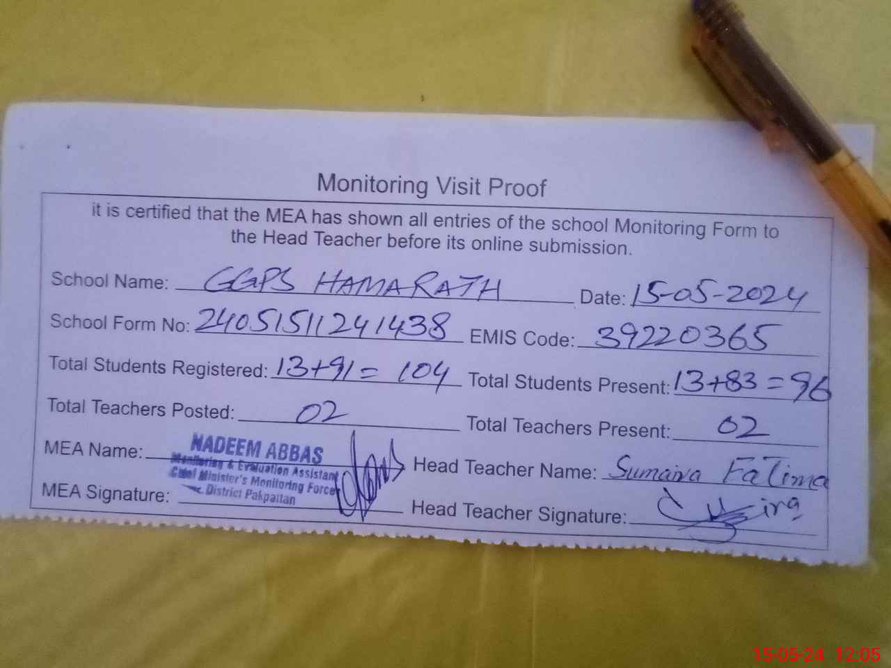 | EMIS Code: 39220365 | Name of School: GGPS HAMA RATH | |||