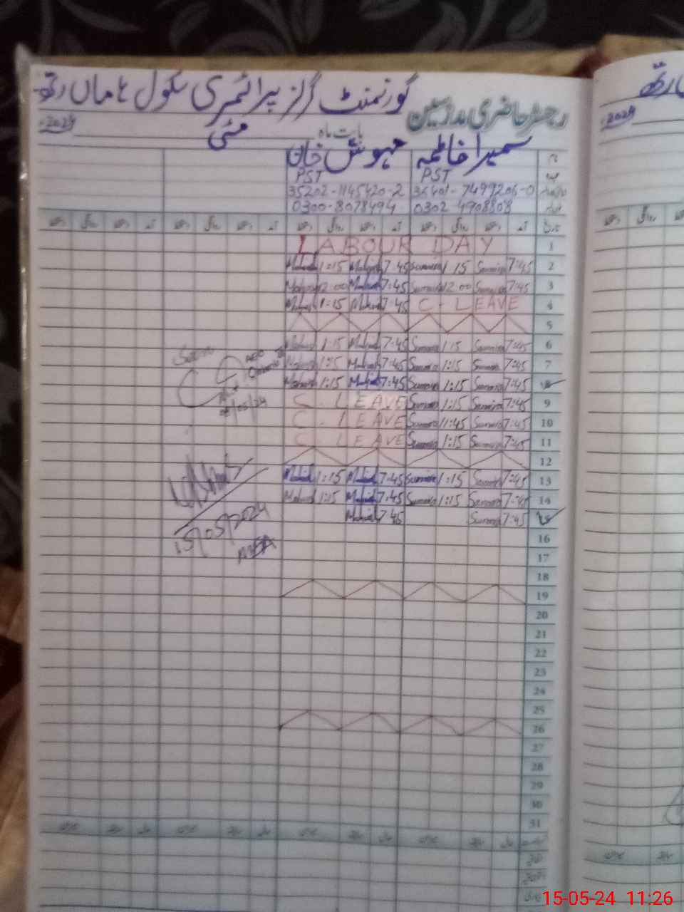 | Name: SU**** FA**** Designation: (School Headmaster's/Headmistress's) PST Phone/Cell Number: 03**** |
