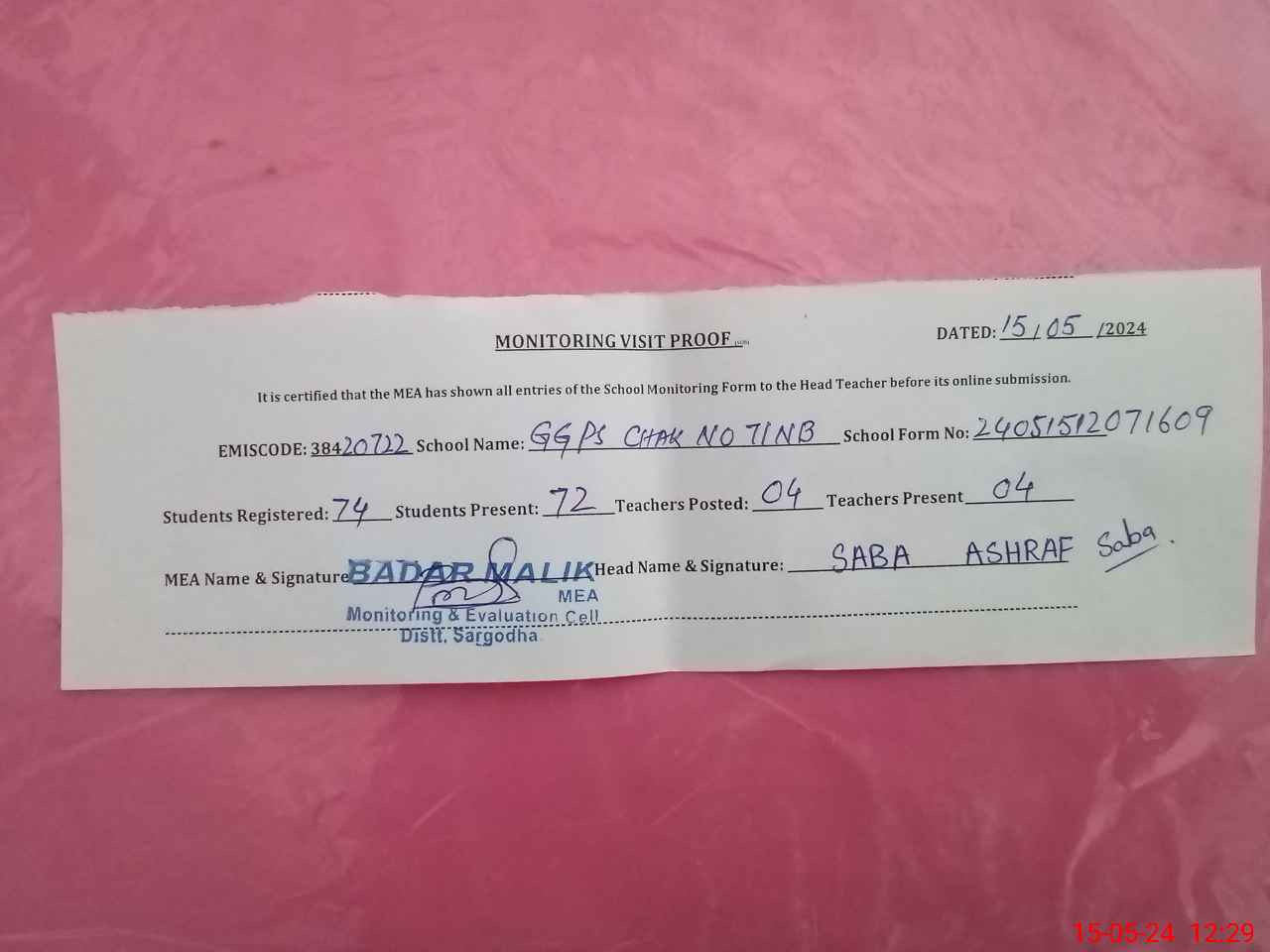 | EMIS Code: 38420722 | Name of School: GGPS CHAK NO.71 NB | |||