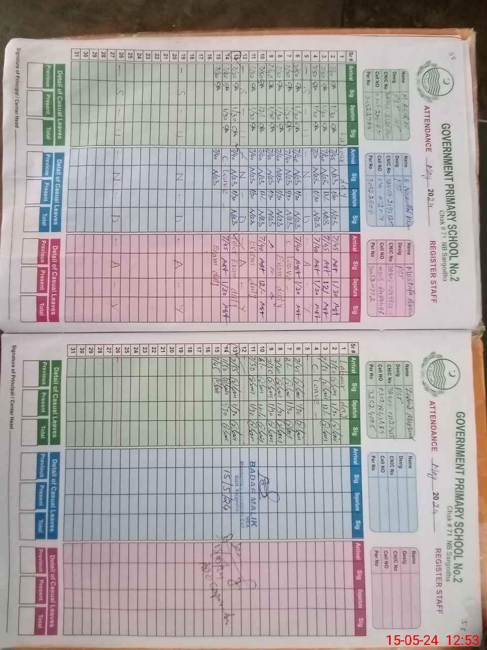 | CNIC | Full Name | Designation | R/C | Absence During Last Calender Month |