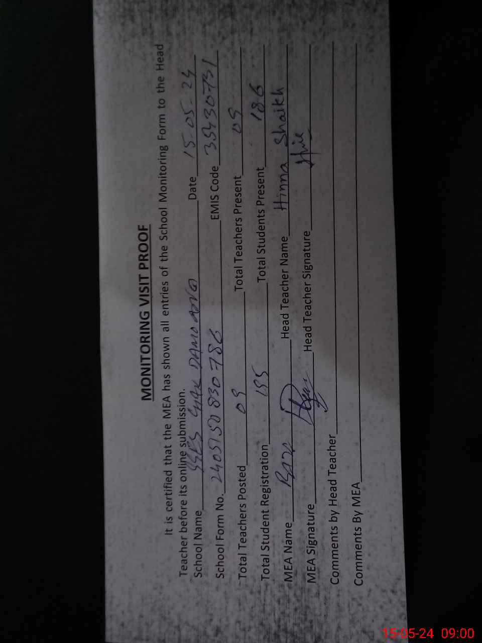 | Certified that this School was Inspected by the Undersigned MEA/DMO Today and the Information Stated Above is as Per Record. | |||||