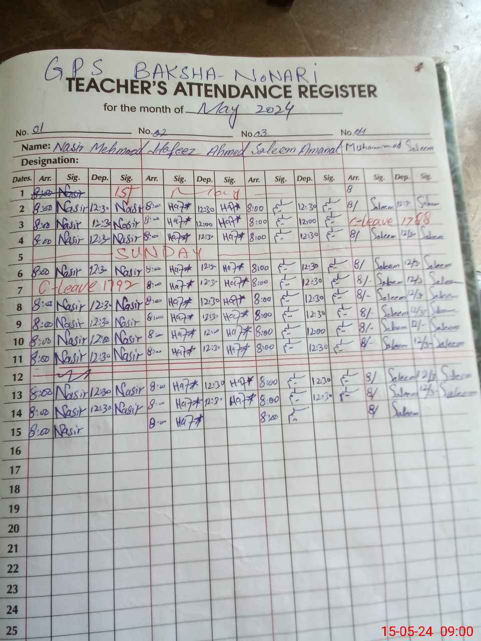 | CNIC | Full Name | Designation | R/C | Absence During Last Calender Month |