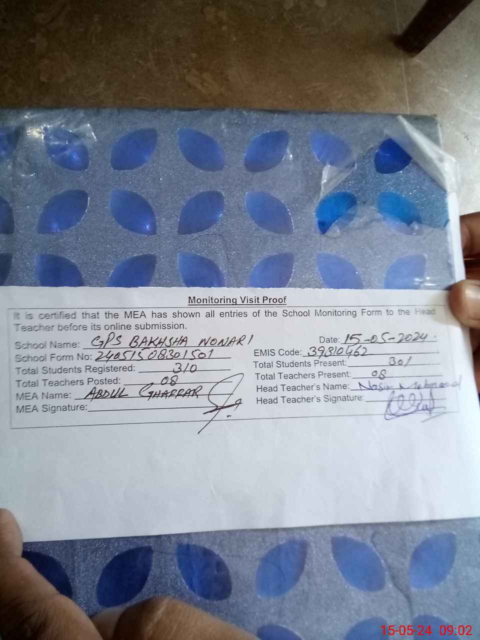 | EMIS Code: 39310462 | Name of School: GPS BAKSHA NONARI | |||