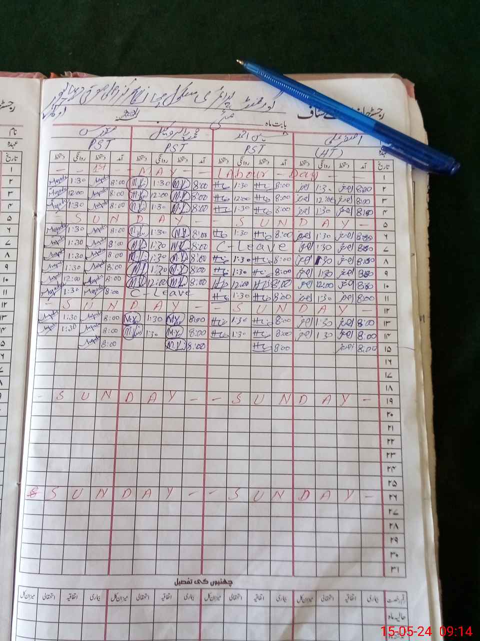| CNIC | Full Name | Designation | R/C | Absence During Last Calender Month |