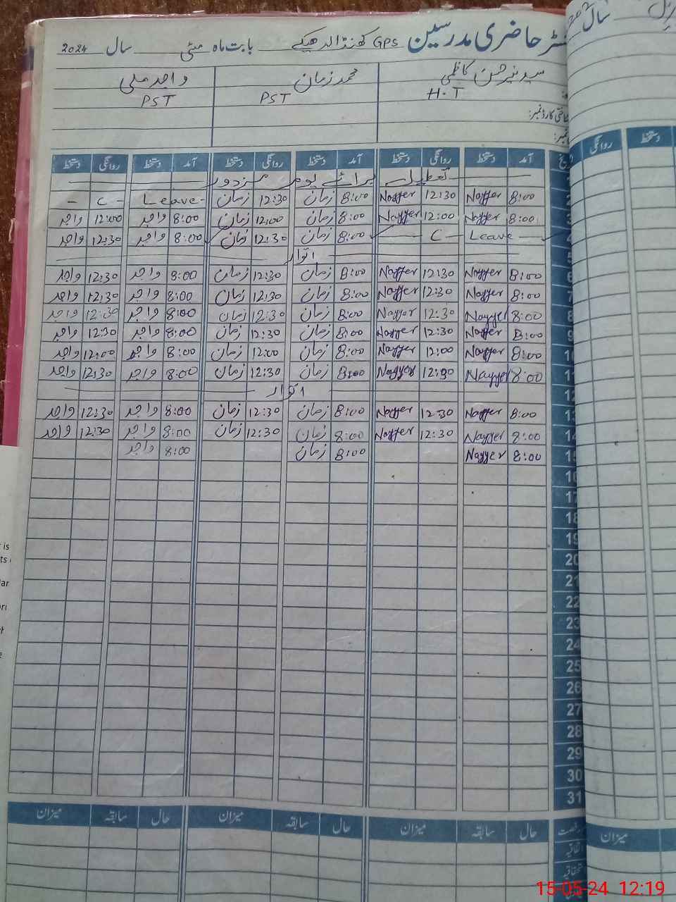 | CNIC | Full Name | Designation | R/C | Absence During Last Calender Month |